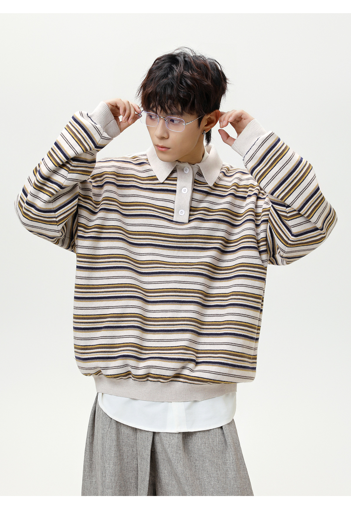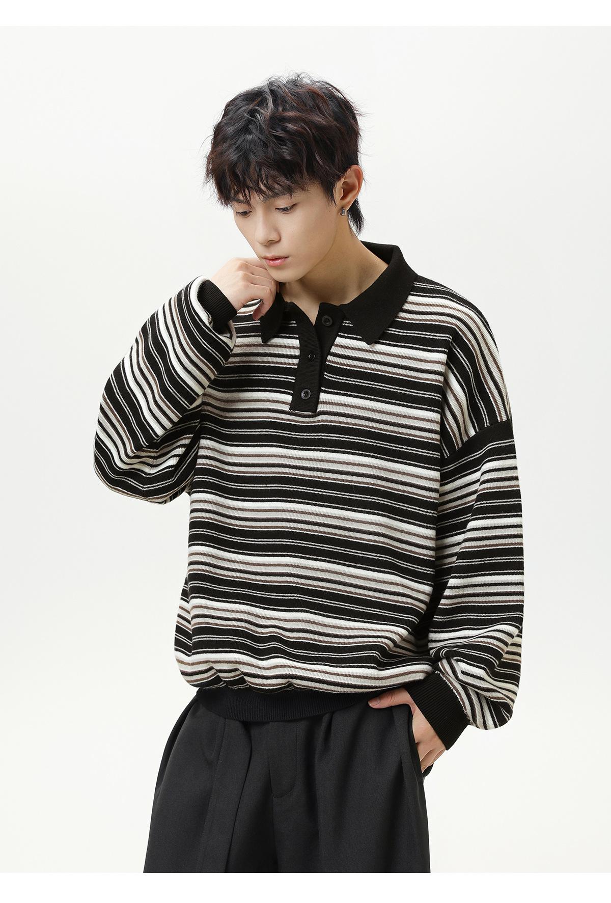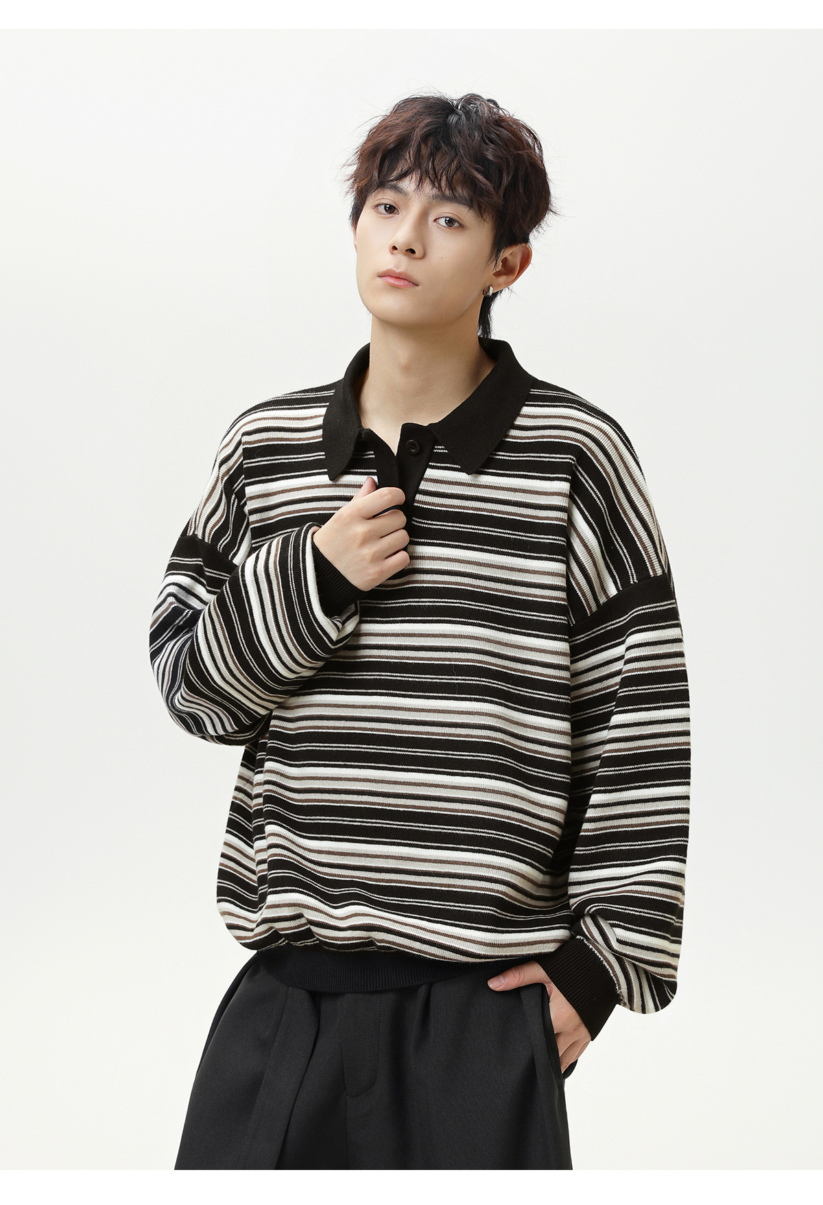 Striped collar sweater for men